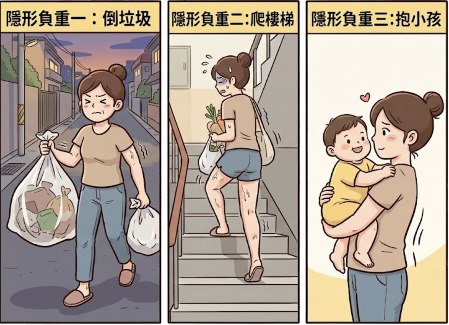 生活中的各種勞動其實都是隱形負重。(圖/AI生成示意)
