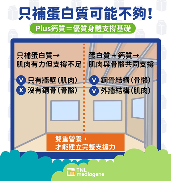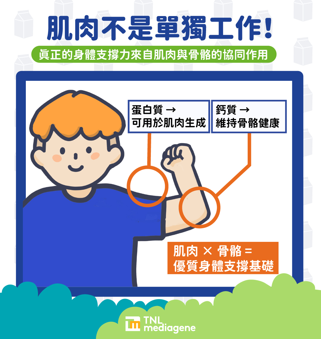 換個角度想,這就像是日常生活中的「微運動」,雖然沒有刻意安排時間、沒有特地換運動服,但身體的肌肉和骨骼一直都在替我們工作。如此一來,好好補充肌肉與骨骼需要的營養,對每個人來說,都顯得更為重要。
