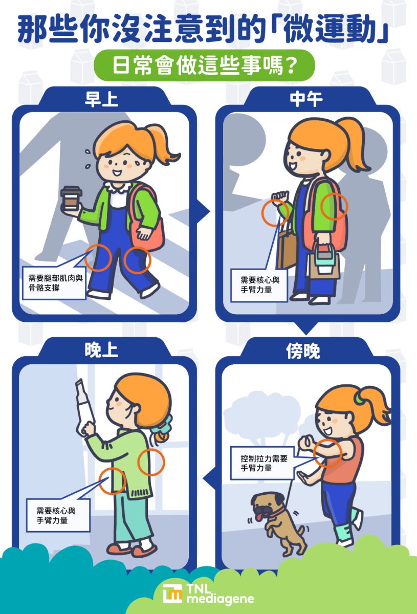 這也解釋了為什麼有時候前一天明明什麼「運動」都沒做,隔天起床還是「不對勁」,因為這些生活小動作,就是日常容易被忽略的微運動!